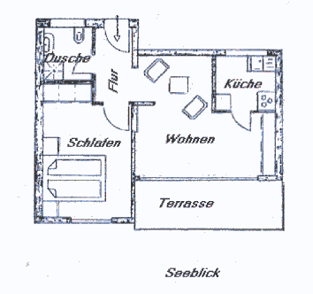 Das freistehende Haus ( ca. 40 qm groß ) - für 2 Personen - mit Sonnenterrasse nach Süden zur Seeseite besteht aus: 1 Zweibettschlafzimmer, 1 Wohn-Esszimmer mit Fensterfront zum Lago Maggiore, Küche und einer Diele, von der aus man ein Duschbad mit WC erreicht. Das Haus ist umgeben von einem Garten in Hanglage. Alle gebräuchlichen Küchen- und Haushaltsgeräte sind vorhanden. Satelliten - TV mit deutschsprachigen Programmen ist vorhanden. Direkt am Haus befindet sich eine PKW-Parkbucht.